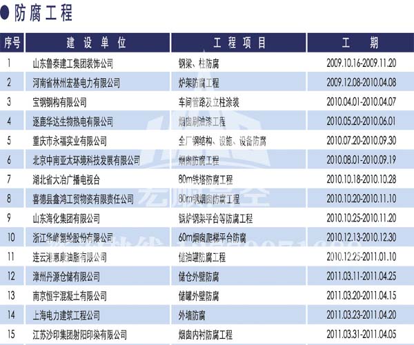 資質齊全 具有建筑工程施工總承包壹級資質、防水防腐保溫工程專業承包壹級資質,鋼結構專業承包貳級,公司整體通過了質量管理體系認證... 了解詳情